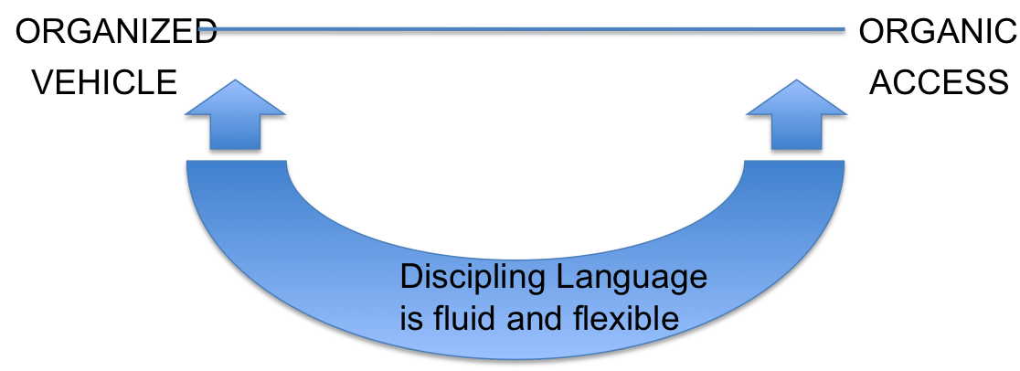 What language does is allow a fluid and easy way of traversing between the ORGANIZED (vehicle) and the ORGANIC (access). Eventually, over time, this scriptural discipleship language shapes the way you think, behave, live. It transforms you and the community that is also shaping you because it’s creating a culture. For me, I’ve spent the last 30 years of my life developing a language that would work in a post-Christian context, developing a vehicle called Huddle that would deliver those more organized, formal discipling times. So how about you?