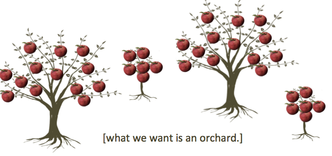 My experience tells me having a big tree doesn’t mean you have a lot of fruit. In fact, what I’ve seen happen a lot more often is people going after the big tree and hoping to get fruit, rather than going after fruit and knowing you get the tree along the way.